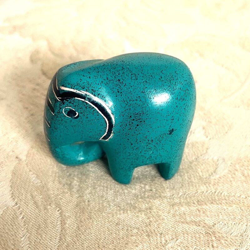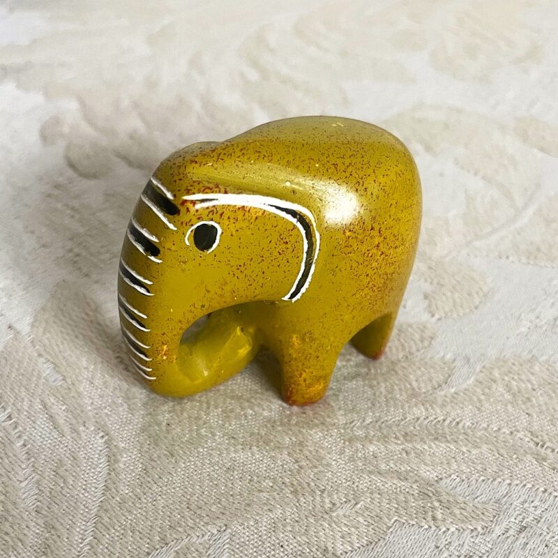 Petite souris fait main en stéatite, de la région Kisii, Kenya. Mesures: 2.5 x 2.5 x 4.5 cm, poids 40 gr, couleur nature de la pierre (écru), avec des petits poiints en noir
