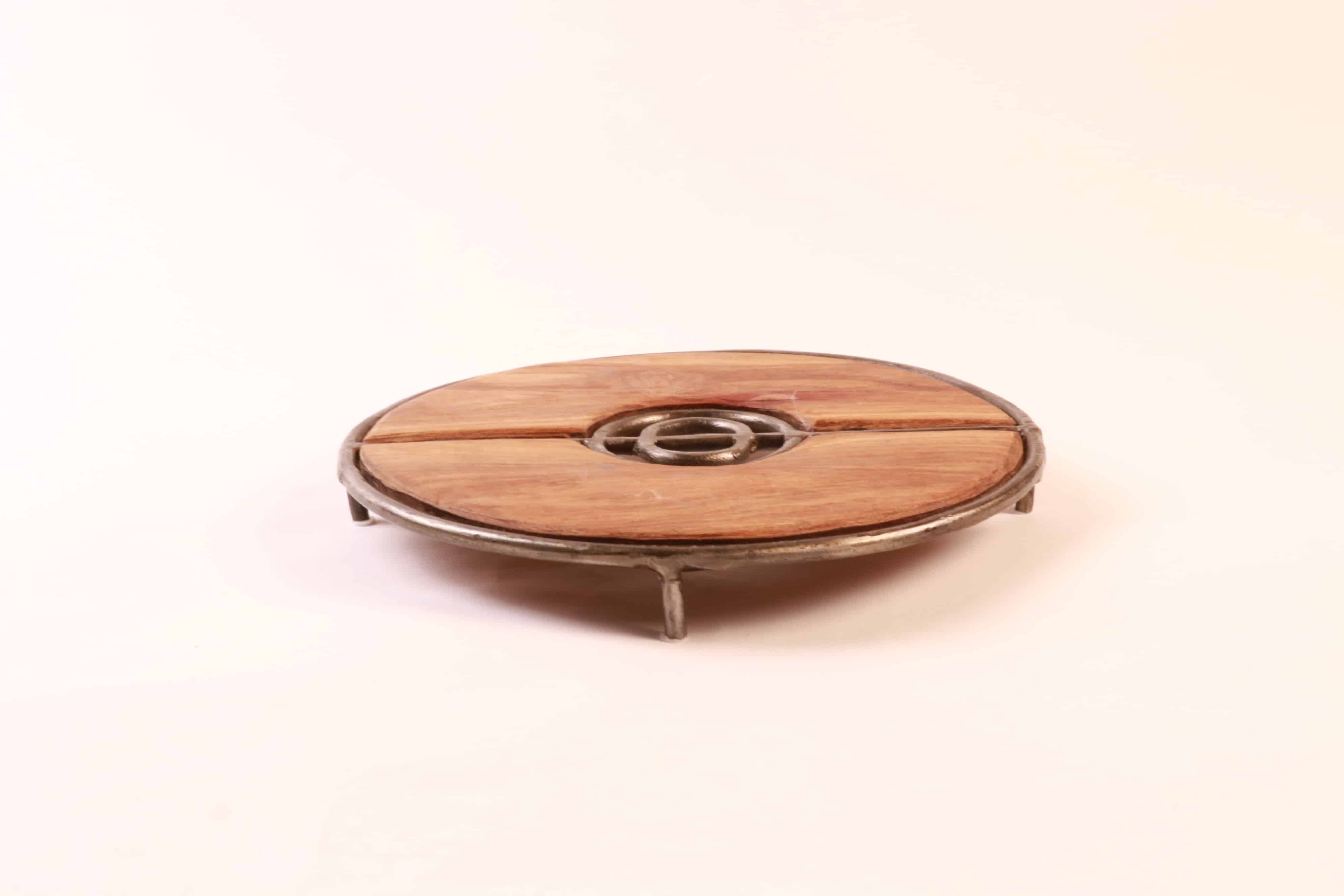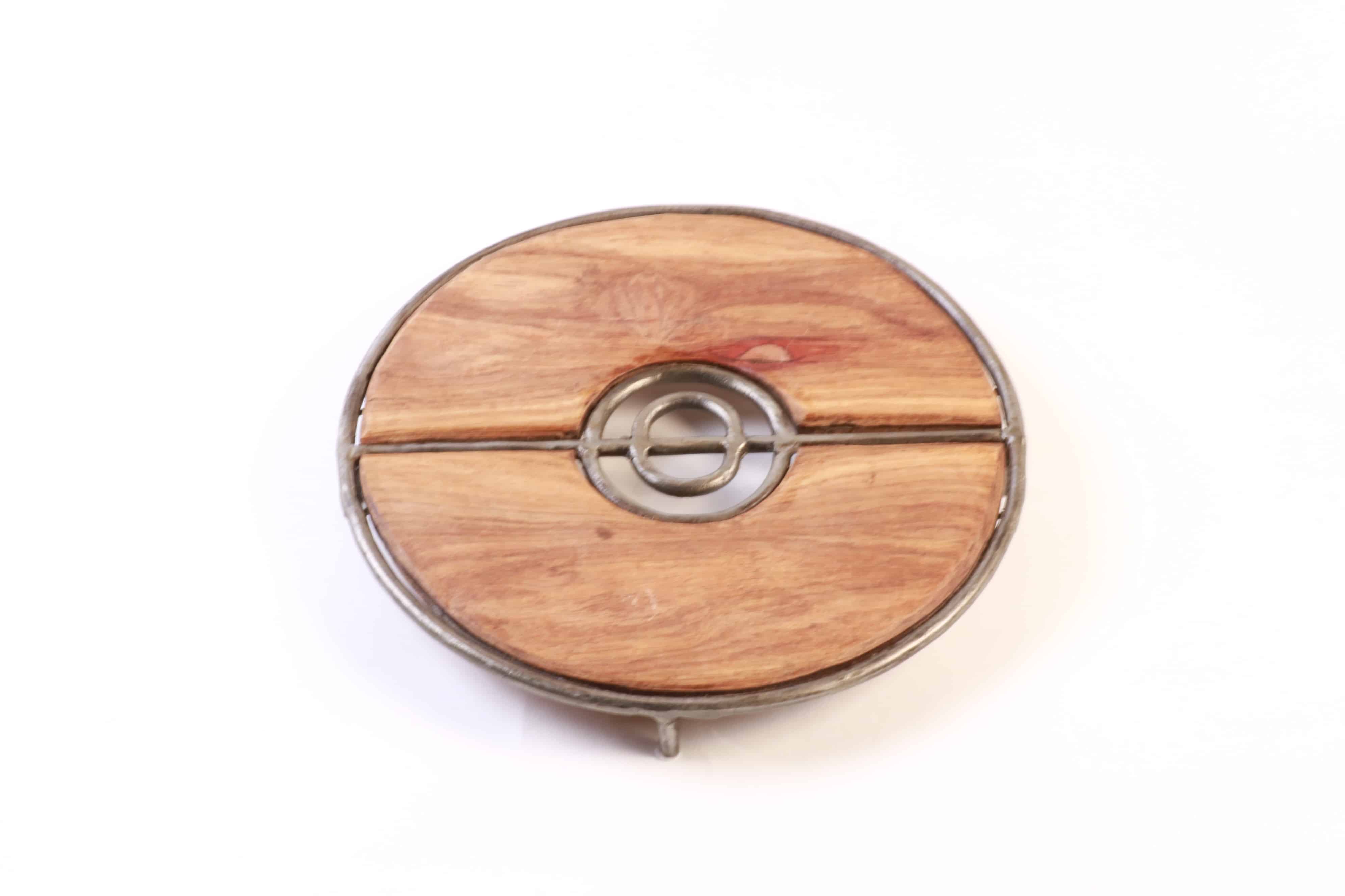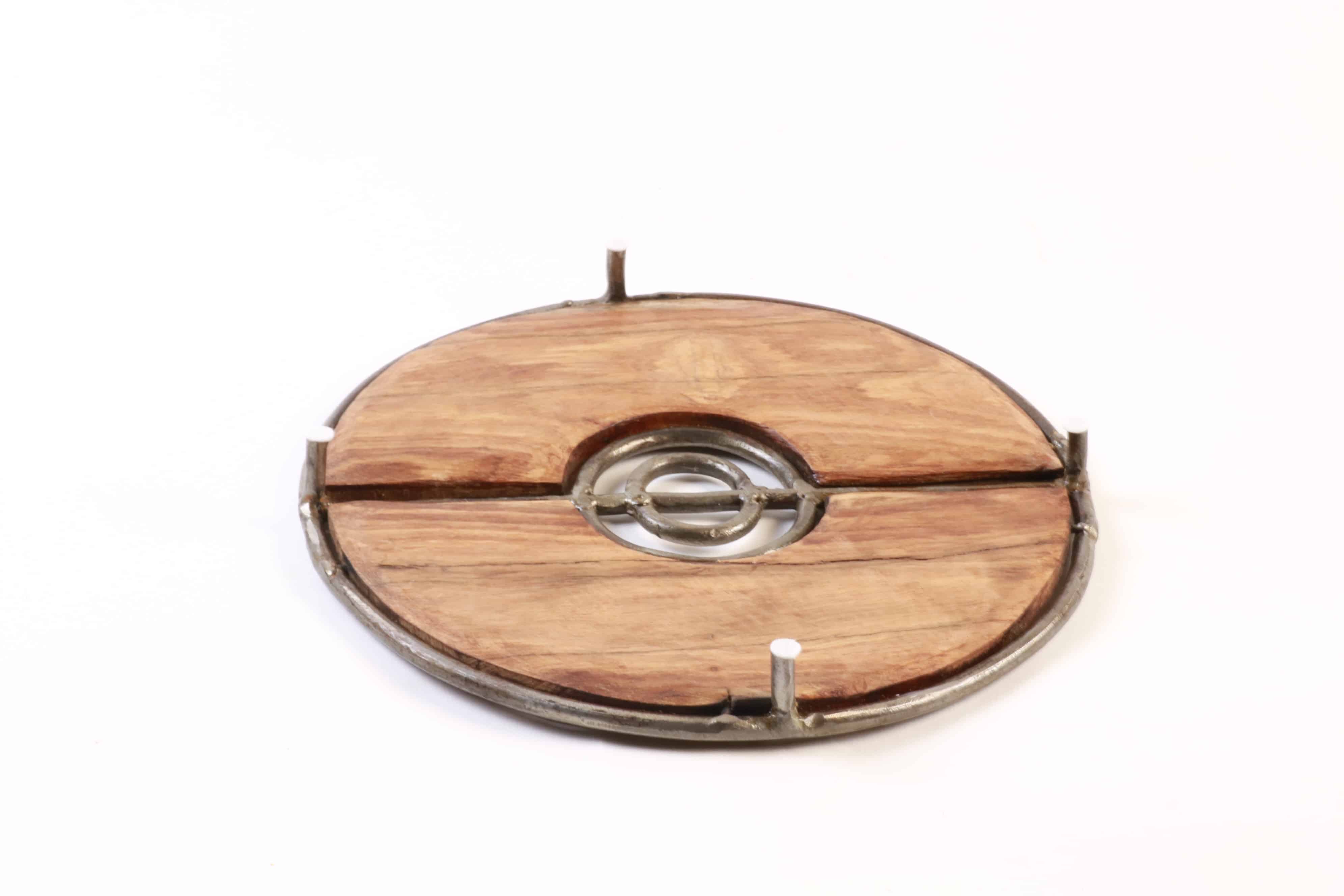 Protecteur de casserole fait main à Burkina Faso, bois et métal recyclé, diamètre 18 cm