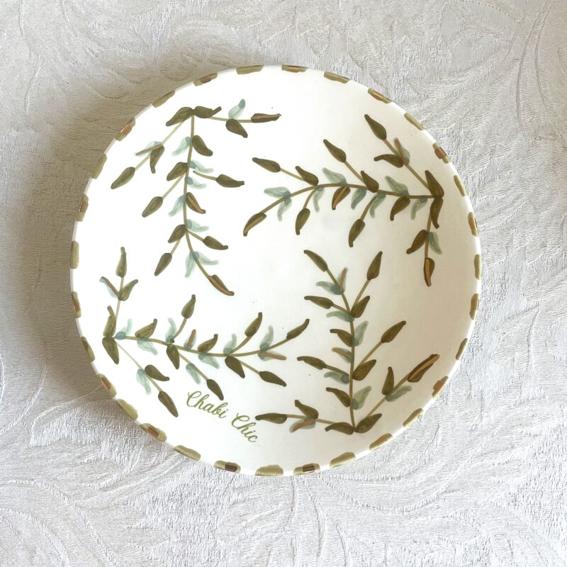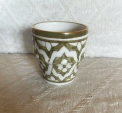 Une grande tasse qui convient également pour boire du thé, pas seulement les verres Beldi. Cette tasse en blanc est décorée de feuilles vertes et d’un bord doré sur le dessus. Diamètre 9cm, hauteur également 9 cm, poids environ 200 gr. Convient pour le lave-vaisselle et le micro-ondes.