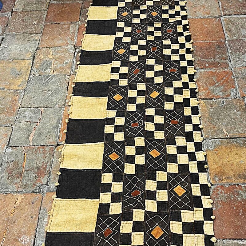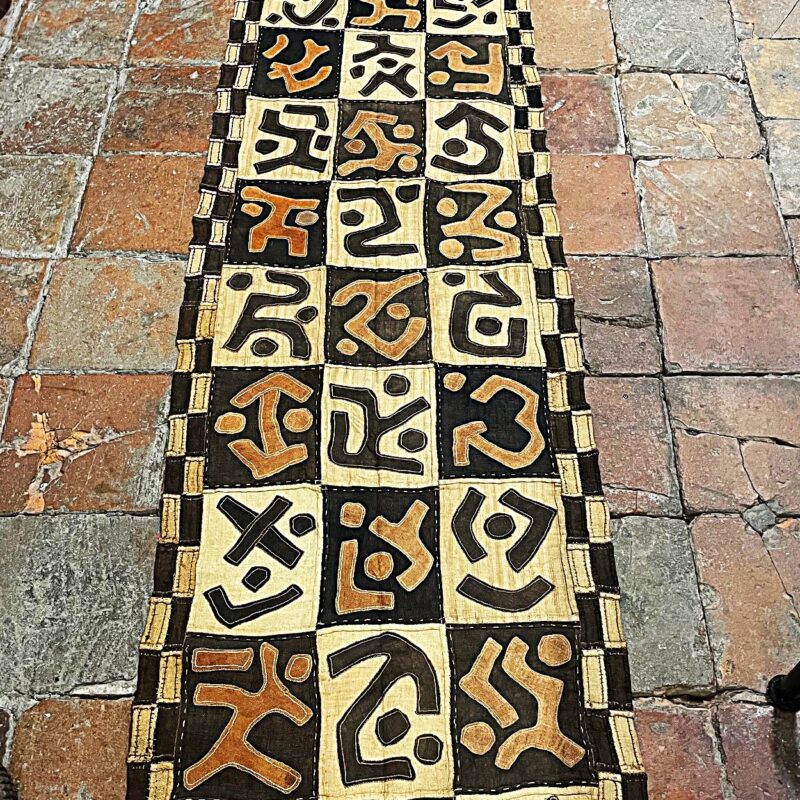 Modell A: Traditioneller Raffia Teppich aus dem Kongo (Demokratische Republik Kongo), Stamm der Shoowa/ Kuba, Handarbeit, dienten traditionell als Brautgeld, diverse geometrische Muster, bestickt, 10-30 Jahre alt, Gebrauchsspuren, Grösse 58/61 x 67 cm, Gewicht, 25 gr., Einzelstück